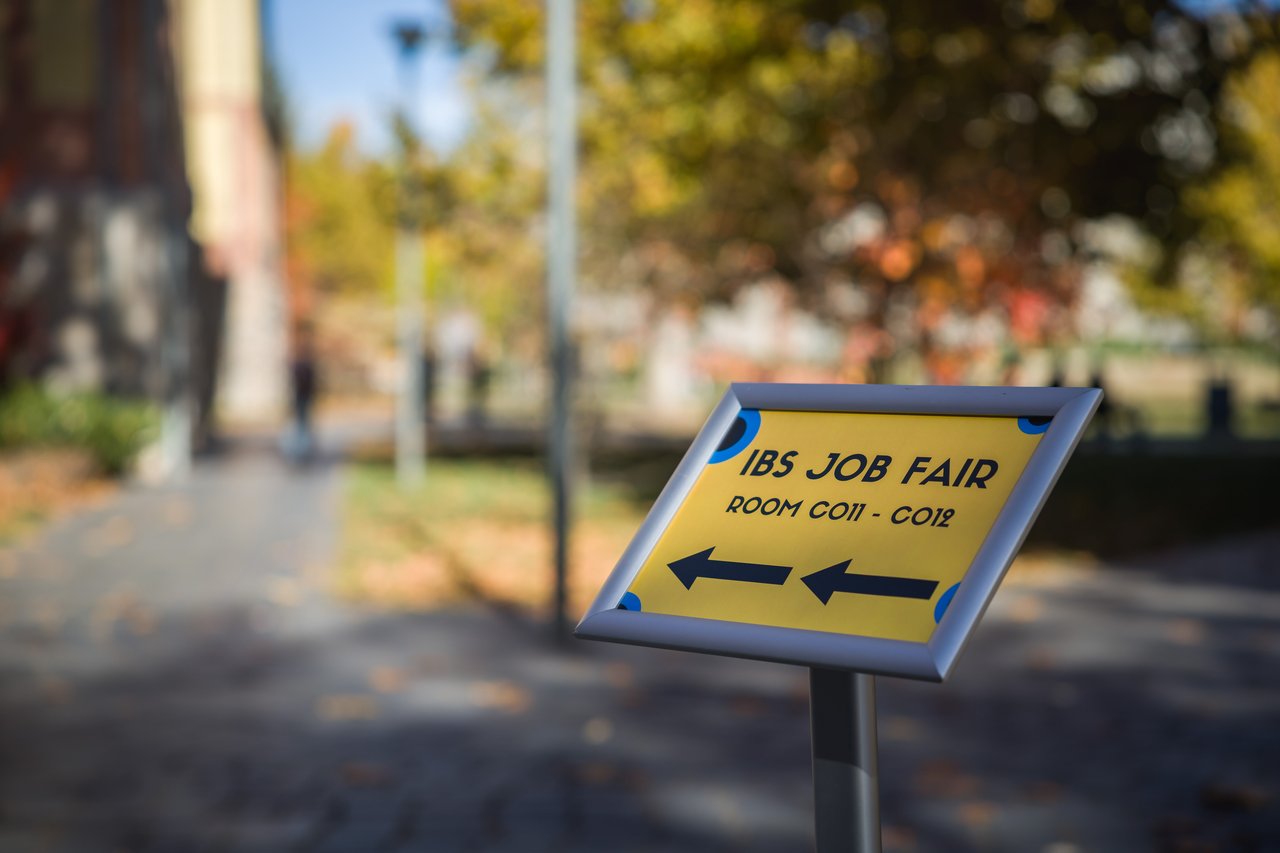 IBS organises an on-campus Job Fair once per semester (typically in October and April) with exhibitors that are pre-selected from among our strategic partners. This is a great chance for our students to meet with great companies and organizations, talk to professionals and recruiters, and inquire about available positions. At the same time, it’s a wonderful opportunity for our exhibitors to introduce their operations to the job seekers, conduct on-site interviews and educate potential candidates on their hiring process.